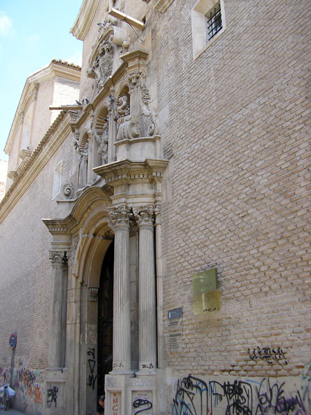 El convento se encontraba situado intramuros de la ciudad, junto a la muralla árabe. El acceso se realizaría a través de una estrecha calle en la que, sin embargo, se construye una portada barroca de tipo retablo, muy movida, que se proyecta decididamente hacia la calle, condicionada por la angostura de su situación.