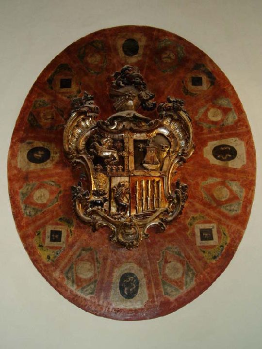Escudo en la escalera de la Casa Pintada, Mula [Cristóbal Gabarrón]