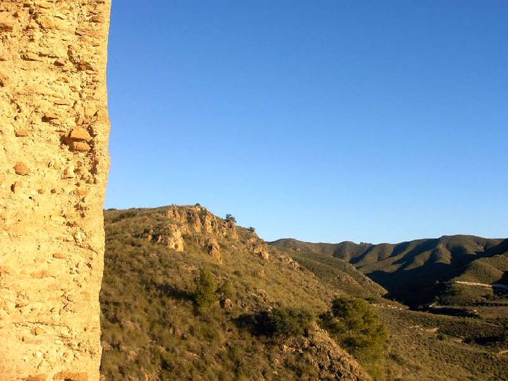 Mientras, el espacio inferior tiene una planta adaptada perfectamente al relieve. Se trata de un albacar, o lugar donde se refugiaba el ganado en momentos de peligro. Está delimitado por un muro de tapial cuyo grosor oscila entre 1,20 m y 1,70. Es posible aún distinguir una torre de planta cuadrada, adosada al muro, que defendía la esquina noreste. La puerta de acceso se situó en el extremo suroeste, y se construyó ideando, a base de quiebres, una complicada estructura en triple codo. En el interior de este recinto existen dos aljibes ubicados en el ángulo noroeste de la fortaleza.