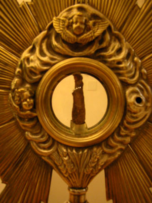 La reliquia fue traida Molina en el siglo XVI por los Jesuitas cuando éstos se hicieron cargo del altar y las celebraciones al patrono San Vicente Mártir.