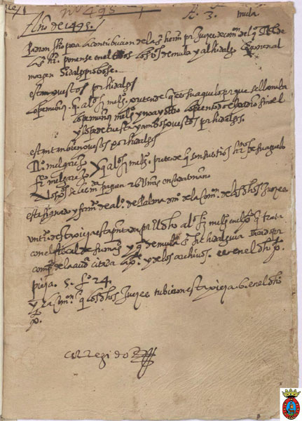 Papel. 6 hojas de 15 x 21'5 cms. Encuadernado con un pergamino de 22 x 32 cms. con su traslado. Muy deteriorado.A. M. de Mula. Fondo Municipal, leg. 340.