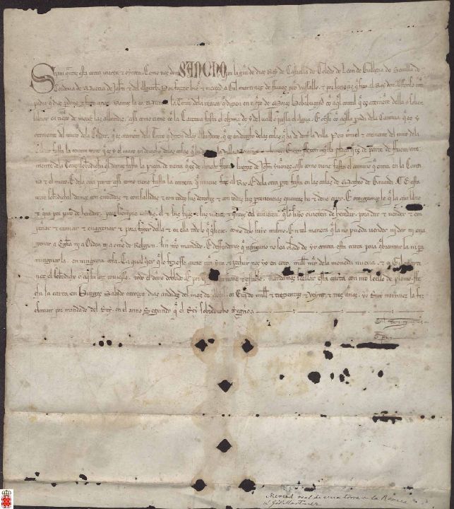 Carta plomada de Sancho IV, haciendo donación de una torre de la Arrixaca...