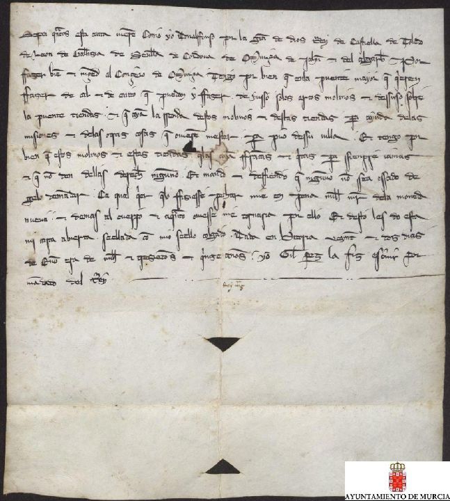 Carta de Alfonso X al concejo de Murcia, concediéndole licencia para que pudieran hacer molinos