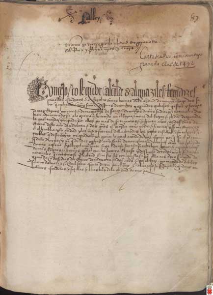 Carta misiva del rey Fernando el Católico notificando al concejo de Murcia la rendición y toma de la ciudad de Granada