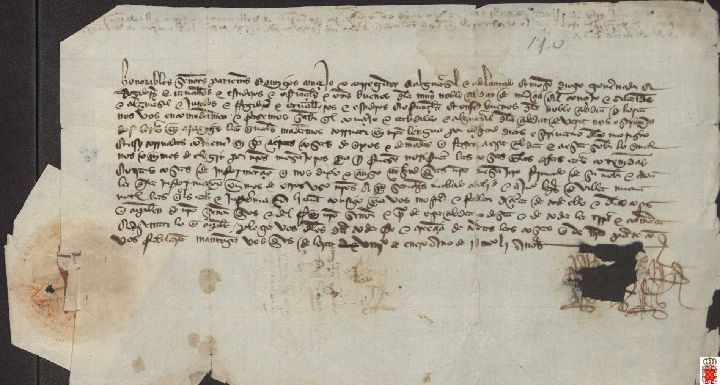 Carta del concejo de Lorca al de Murcia, comunicando el recibo de varias cartas, en árabe desde Vera, con ciertas quejas y peticiones que envían con mensajeros al concejo de Murcia.