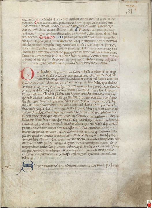 Copia en Libro de Privilegios, 150 fols. Pergamino. [360x260 mm.]AMMU. Serie 3, n. 47, fol. 31
