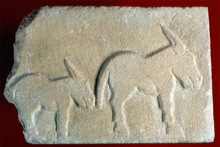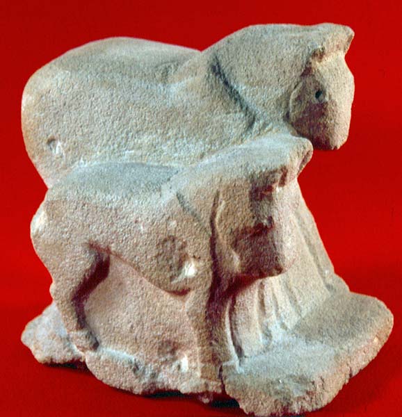 Esta piedra fue hallada en el santuario. Continúa diciendo que "en lo más encumbrado del monte que domina todo aquel sitio", en dicha cumbre había no sólo cimientos sino también algunos pedazos de paredes de un edificio; y habiendo hecho limpiar aquel espacio hasta descubrir el pavimento, se advirtió y conoció haber estado distribuido en varias piezas y algunas de ellas baldosadas de piedras grandes labradas y bruñidas, pero un cuartito de aquellos estaba enladrillado de piezas de plomo, cuya figura imitaba "a los ladrillos que suelen hacer de chocolate, del peso de media libra, aunque algo más gruesos" se descubrió buena parte de la portada de dicho edificio, que era de piedras labradas, unidas con fortísimo betún y algunas con plomo; y habiendo cotejado las otras piedras sepultadas y caídas conjuntamente con ésta de que hablamos, con las que estaban en pie para formar dicha portada, se conoció evidente que eran de la misma calidad y, sin duda, las que habían servido de compañeras en dichas pilastras y arco para dicho edificio. Por lo que adelanto muy poco el discurso, sin violencia, se hace creíble, que esta nuestra piedra en forma de escudo con la mula, la cual se halló entre las otras que estaban caídas y sepultadas, estuviese cerrando el arco por corona de la portada, según la común costumbre.