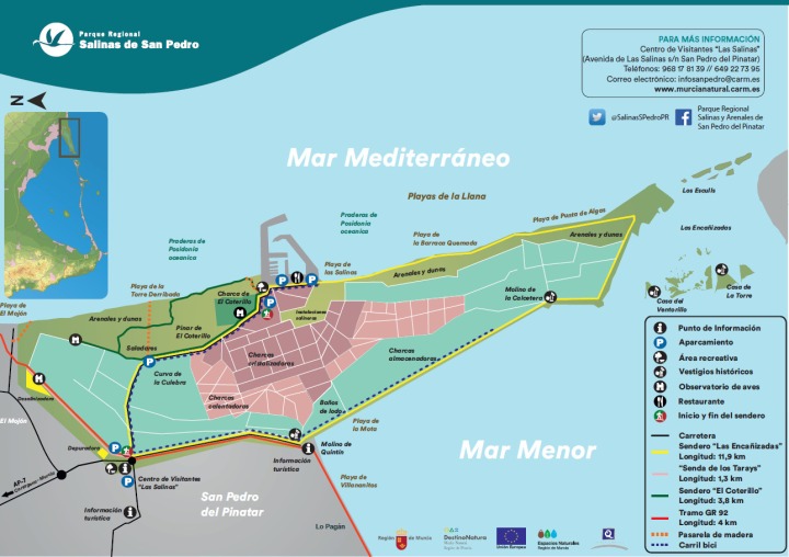 Para obtener una visión global del Parque Regional de San Pedro del Pinatar, recomendamos conocer el Centro de Visitantes “Las Salinas”,, situado a la entrada del Parque. Allí conseguiremos toda la información para el visitante.