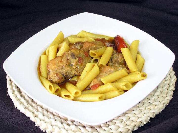Cuando el sofrito esté ya listo sólo habrá que añadir agua y la carne de conejo y cocer todo a fuego moderado por unos 30 minutos. Por último se añadirán los macarrones que sólo tardarán unos 20 minutos en cocer, tiempo que tendremos en cuenta calculando la hora en la que queremos servir el plato. Este guiso puede quedar preparado en su primera parte y esperar al momento indicado para añadir la pasta.