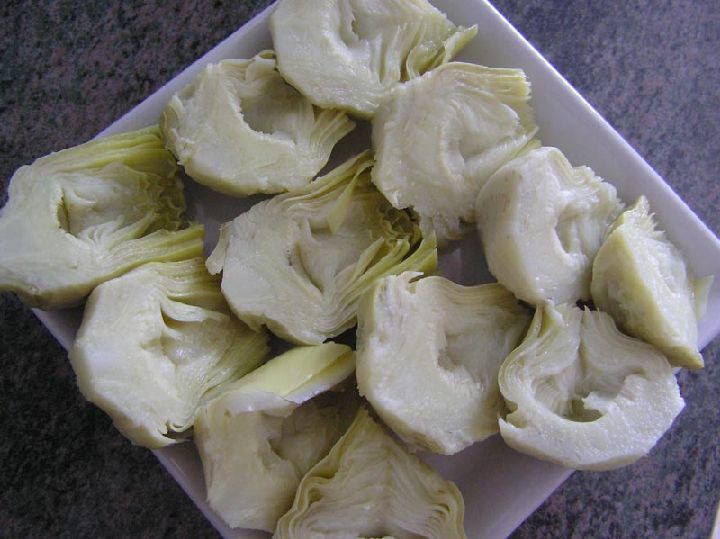 Esta receta es muy sencilla de elaborar. Podemos utilizar corazones de alcachofa cocidos, bien sea del producto en fresco o de alcachofas en conserva, sea conserva en agua, sal o marinada, el resultado sólo variará en el sabor y el punto de acidez.