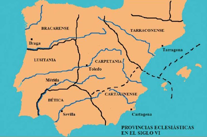 En medio de ese proceso, en el concilio toledano de 531, el obispo Montano de Toledo se proclamó metropolitano. Esto nos lleva al complicado y confuso problema de la provincia Cartaginense. Sabemos que a finales del siglo III se creó una provincia cuya capital, por más que el nombre parezca indicar que es Cartagena, nos es desconocida. A mediados del siglo V, y tras una serie de avatares políticos, la provincia quedó escindida en dos. La parte interior, con los valles del alto Duero y el alto Tajo, junto a gran parte de La Mancha, quedó bajo dominio visigodo, con centro político en Toledo. La zona costera quedó en una posición autónoma, dependiente nominalmente de la corte imperial.