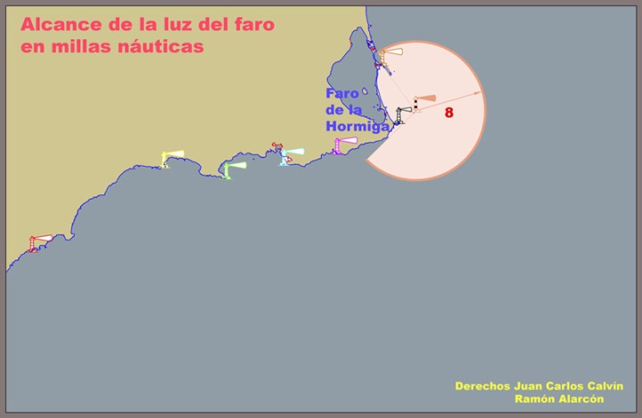 Este faro esta situado a 2,5 millas de Cabo de Palos, en la isla de La Hormiga. Sirve para señalar el peligro que para la navegación supone este conjunto de islotes y bajos, donde ya se han originado numerosos naufragios (figura 1).