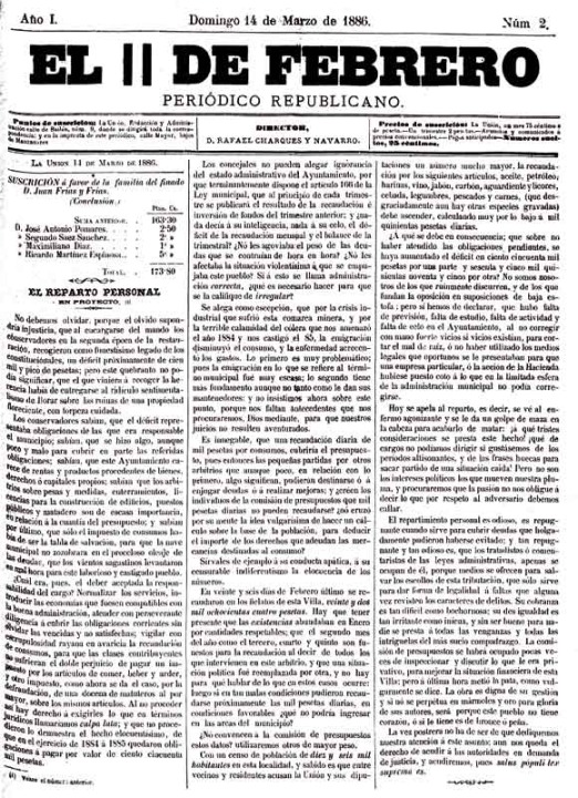 La unión entre todos los republicanos dio lugar al nacimiento de El 11 de Febrero. Este semanario dominical debe su título al día en el que las dos fracciones republicanas de La Unión confraternizaron en un encuentro celebrado en el teatro de la localidad para conmemorar el aniversario de la I República. Posteriormente se concertó una reunión en la redacción de El Eco de La Unión en la que se sentaron las bases de El 11 de Febrero, cuyo primer número apareció el 7 de marzo de 1886. La redacción estaba compuesta por Rafael Charques, quien ejerció como director, Francisco González (quien en un principio tenía previsto dirigir El Progreso), Pascual Molins y José María Pérez. El 11 de Febrero dedicó su primera plana a lanzar arengas políticas. Además publicaba noticias locales, cartas de los lectores, artículos literarios y ecos de sociedad. A finales de marzo Rafael Charques dejó la dirección por discrepancias políticas con los republicanos de la villa. Como consecuencia de ello, el 1 de abril de 1887 el semanario afirmó que dejaba de publicarse por razones “de índole puramente política”. Sin embargo, reanudó su actividad con normalidad bajo la dirección de Francisco González. El 8 de enero de 1888 anunció que suspendía "quizá por muy poco tiempo" la publicación. Su ausencia sería definitiva.