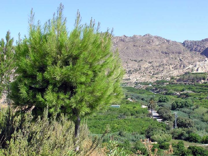 Las laderas de solana, por recibir una mayor insolación y mantener sus suelos menor humedad, quedan cubiertas por pinares abiertos y matorrales bajos, donde crecen especies como el esparto, el romero, diversas especies de tomillos, lavandas y el lastón, que forma un pasto denso y bajo. Las comunidades vegetales de mayor interés botánico son los tomillares sobre yesos en el Cerro de la Rosa. Se trata de comunidades capaces de crecer sobre suelos con altos contenidos en diversos tipos de sales. Al estar constituidas por plantas muy especialistas y de escasa área de distribución, tienen un gran interés científico y de conservación.