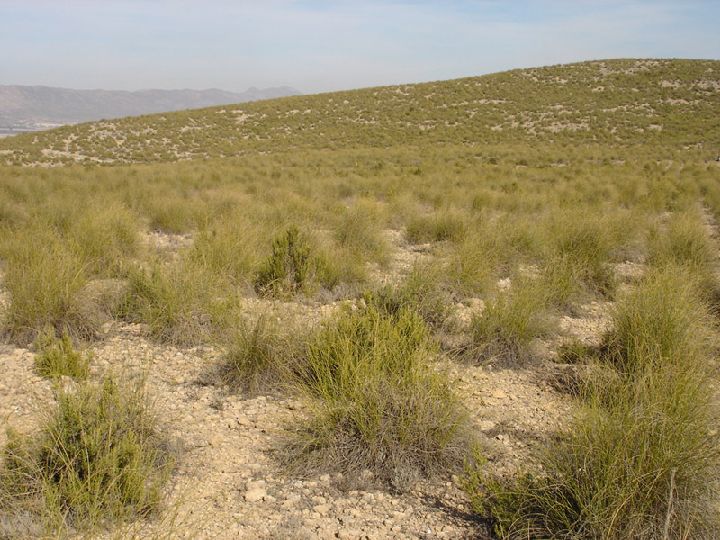 Los espartales constituyen una etapa de degradación del matorral mediterráneo que ha sido favorecida por el hombre, en este sentido, gran parte de los espartales murcianos tienen origen antrópico y no es difícil comprobar cuales son resultado de antiguas plantaciones, con las macollas claramente alineadas.