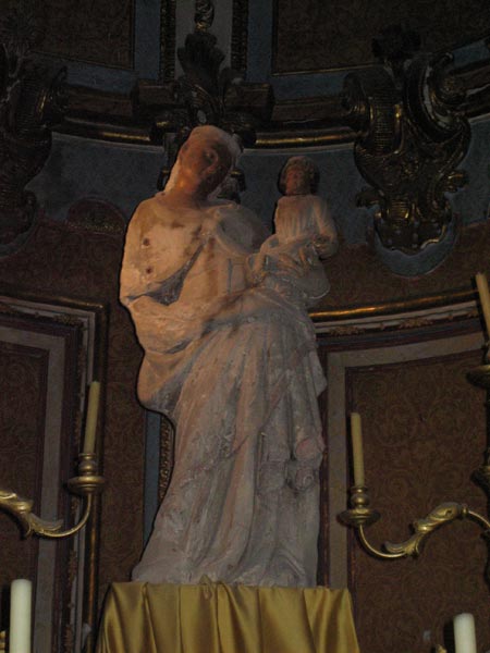 Se relaciona esta imagen con las Vírgenes catalanas, de gesto primitivo, sonrisa arcaica, e indumentaria que describe la minuciosidad de detalles en la piedra como es el caso del cinto mercedario. El cuerpo, con un acentuado contrapostro, origina una curva donde se coloca el Niño, acompañado de un adecuado ritmo de pliegues; la cabeza gira en posición contraria contrarrestando el excesivo giro del cuerpo. La imagen ha perdido la policromía que debió ser lucida.
