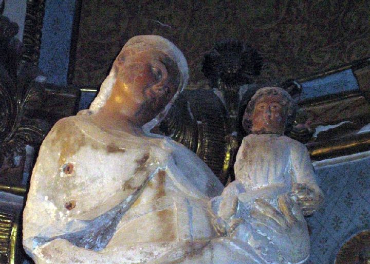 Esta Virgen ocupo la capilla de los Androrillas y pasó después al altar mayor, siendo conocida por la población como Ntra. Sra. Del Cuello Tuerto.