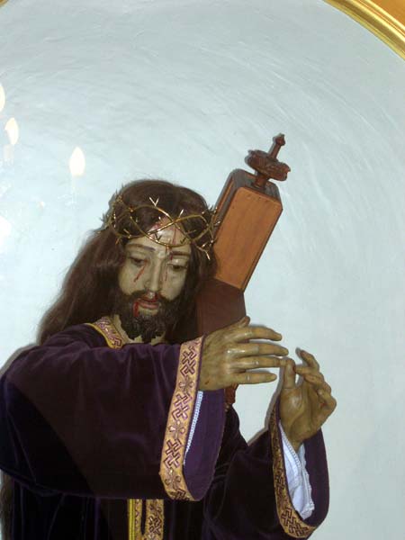 Se trata de una representación de Jesús camino del Calvario. Lleva sobre sí la cruz en la que ha de ser clavado. Está vestido con túnica en color morado aterciopelado. Ésta se decora con un ribete que bordea las mangas y la parte frontal.