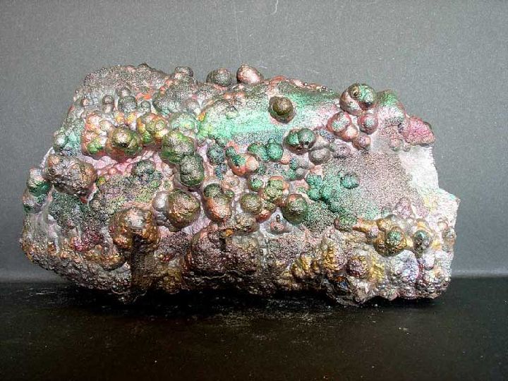 Existe una variedad irisada que se reconoce fácilmente por sus irisaciones en vivos colores metalizados con predominios de los azules, verdes y violetas.