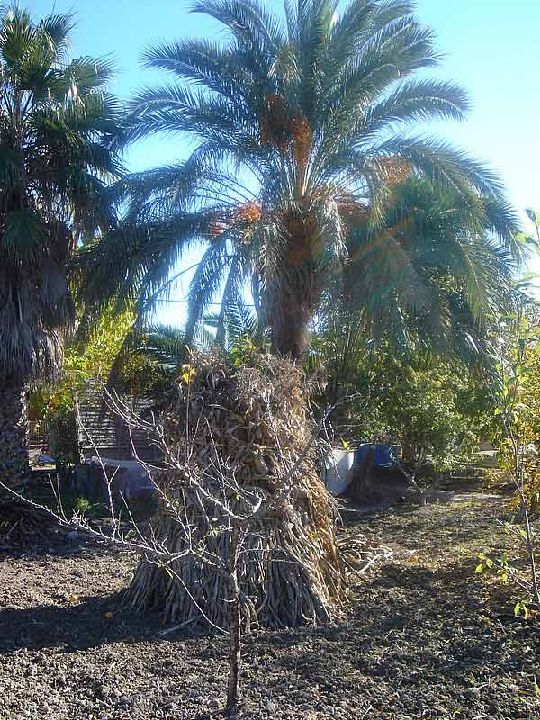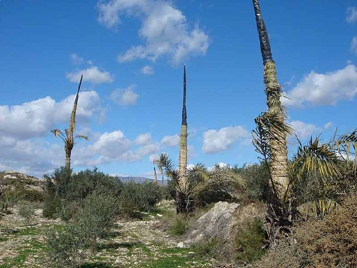 De las palmeras, además de los dátiles, en nuestra zona se han utilizado tradicionalmente las palmas blancas para las procesiones del Domingo de Ramos. Estas palmas se obtienen mediante el encaperuzado de las ramas de las palmeras durante meses.